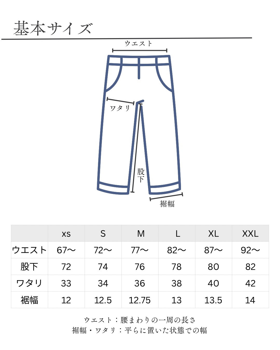 ● サイズ調整はウエスト・股下のみです
